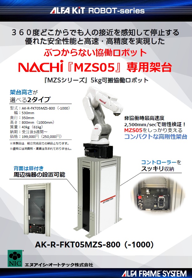 ALFA KIT ロボットシリーズにNewラインナップ登場!!NACHI『MZS05』専用架台