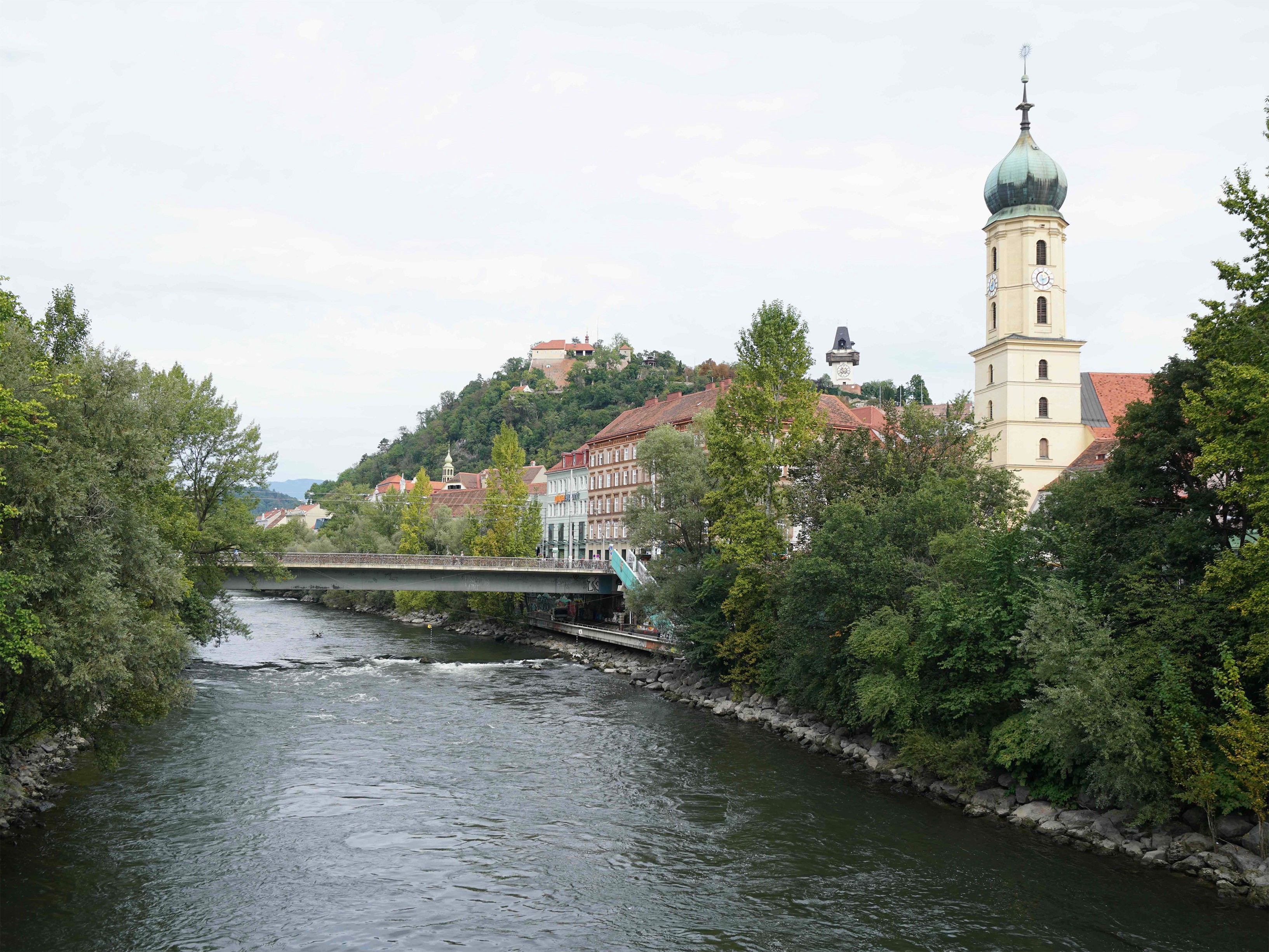 グラーツの気ままな街歩きはここからスタート ムール川にかかる橋
