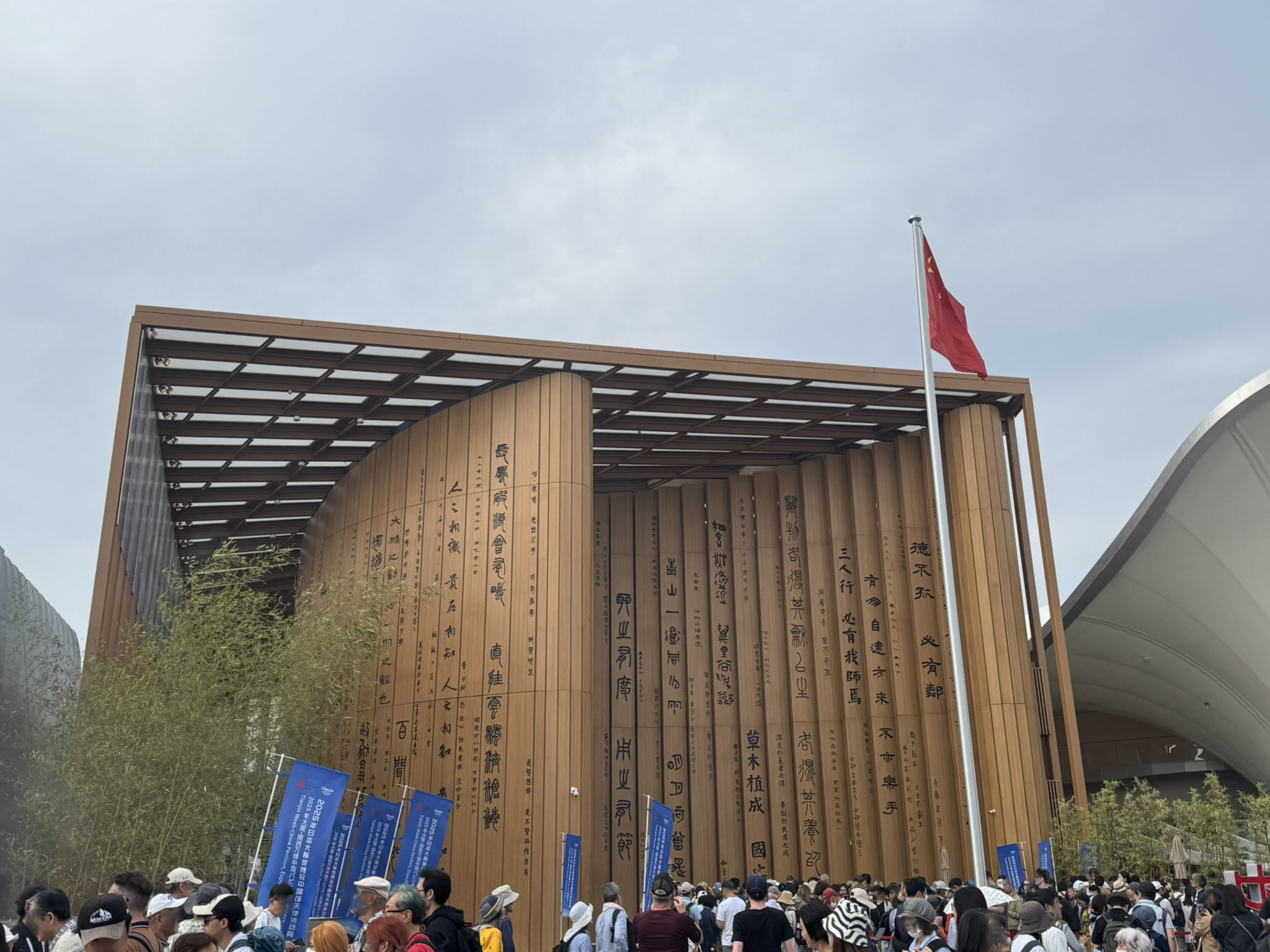 外壁に漢字がいっぱい書かれた印象的な外観ですが、これは中国の伝統的な書道の巻物を広げた形をモチーフに作られているそうです。