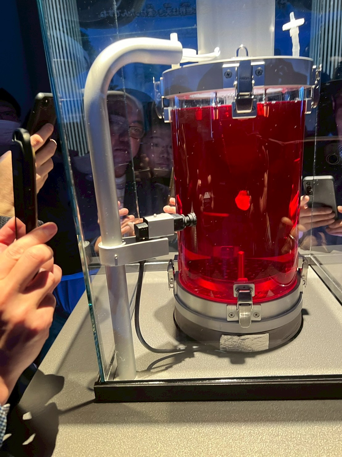 そして、PASONA NATUREVERSE館では、直径約3センチの心臓の形をしたコラーゲン製の膜に、iPS細胞から作った心筋細胞を染み込ませて作られた動く「ミニ心臓」を見てびっくり!