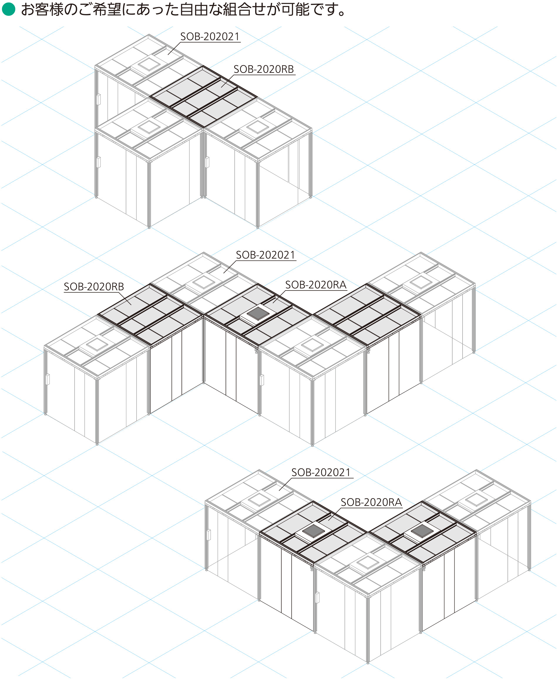 専用オプションの連結用天井部材『連結くん』と組み合わせるだけで