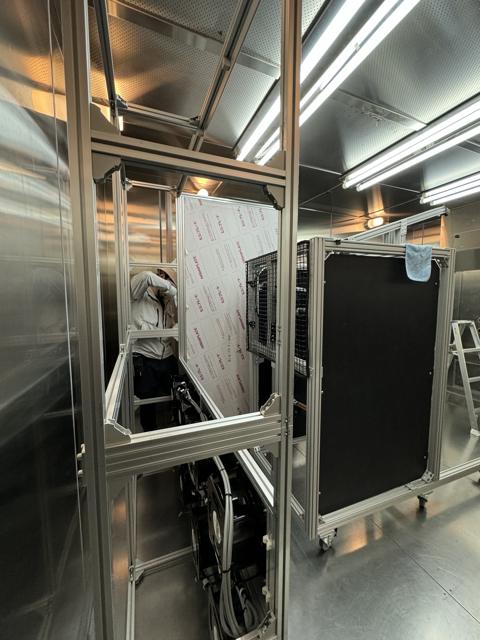 残された実験装置を定位置に設置し、これを囲うように組み上げていきます。